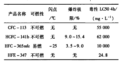 HFE-347无燃烧危险性,无爆炸极限,无需安装防爆设备,且毒性较低,对工作场合的工人影响小,与CFC-113、HCFC、HFC相比,安全性更高。