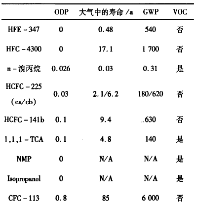 在各种类型的清洗剂当中,HFE-347的ODP为零,GWP值低,不属于VOC物质,安全环保。